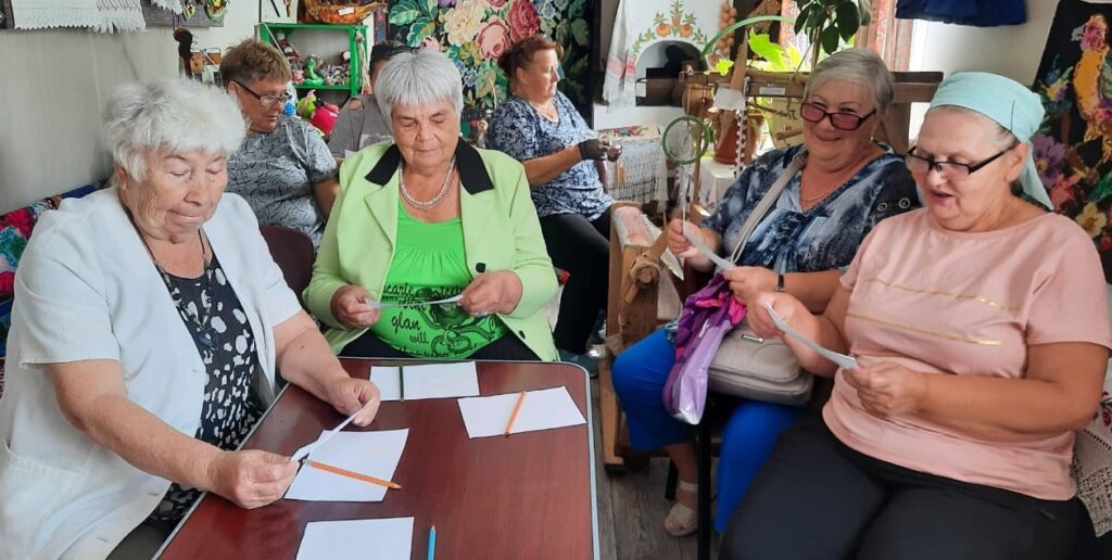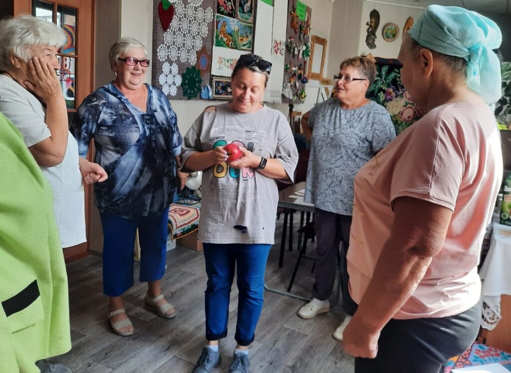 Женщины дружно отгадывали фруктовые загадки, вспоминали название сказок и песен где упоминается яблоко, вспомнили пословицы и поговорки.