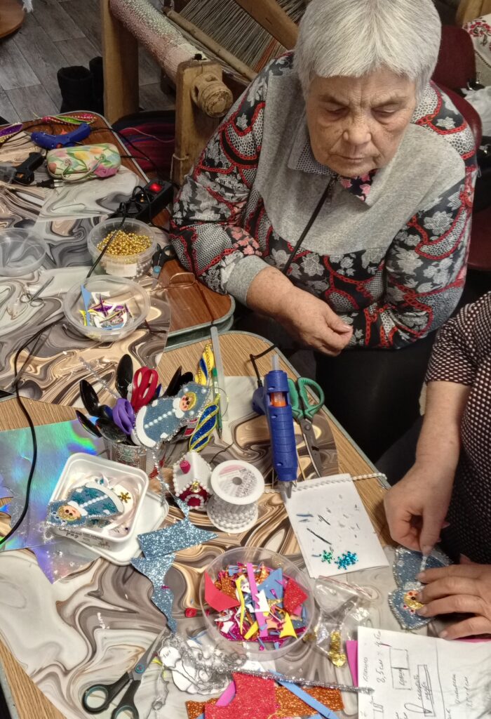 В процессе творчества женщины активно обсуждали меню новогоднего стола и делились кулинарными секретами.