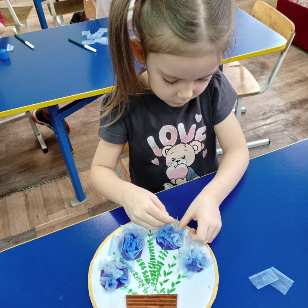 Шаг за шагом дети переходили от одного этапа к другому, и в итоге у них получились панно – сувенир с прекрасными цветами, которые они своим мамам и бабушкам в их весенний праздник.